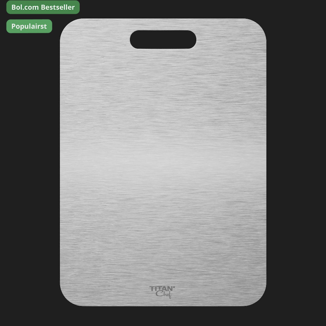 Met zijn duurzame roestvrijstalen design gaat de TitanChef snijplank jarenlang mee. Je haalt daarmee een stijlvolle en kwalitatieve plank in huis die in elke keuken tot zijn recht komt.